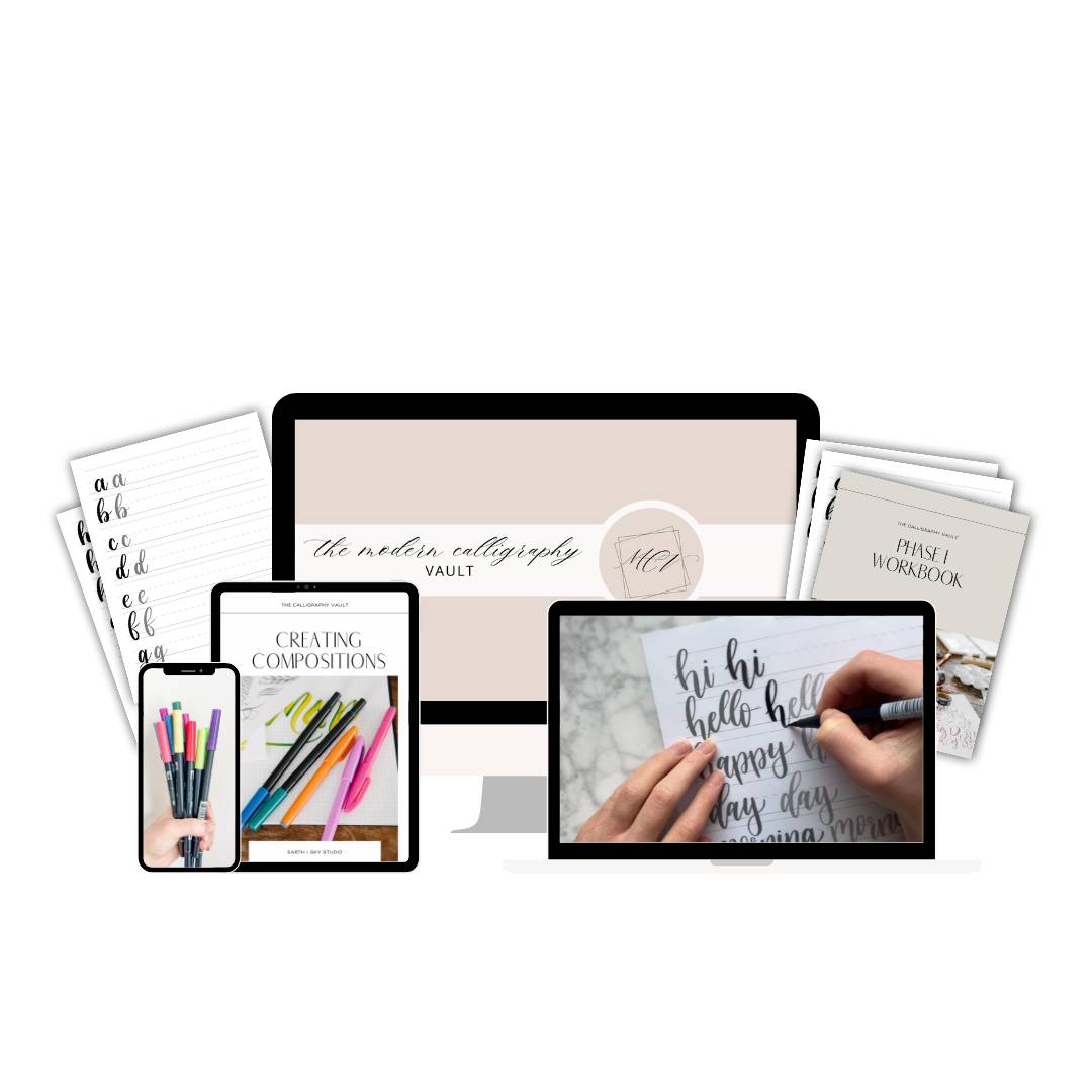 4: SIX BONUSES (Holiday Calligraphy Course, Lifetime Access + Updates, Inspiration Board, Composition Flowchart, Photographing Your Lettering Mini Course, and 5 DFY compositions)
